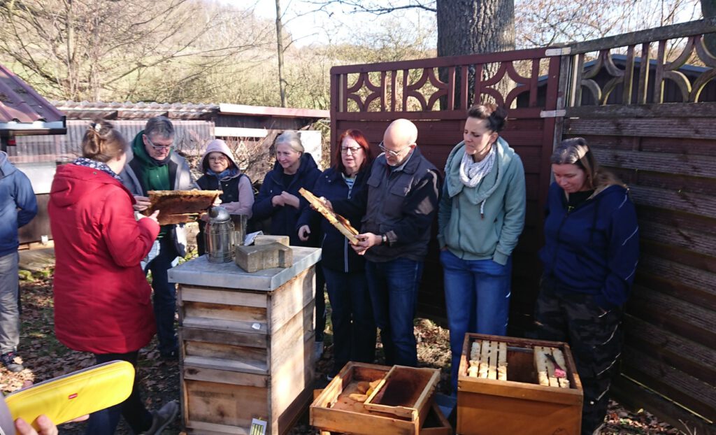 Da viele von uns am Vortag auf dem Vortrag “Imkern ohne Chemie” von Thomas van Polt in Biebergmünd waren, war dies natürlich auch ein großes Thema und wurde ausgiebig diskutiert.